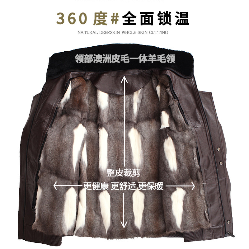 Headliner Deer Skin Leather Clothing Male Dermis Air Force Pilot Leather Jacket Minke Liner Mid Aged Fur Integrated Jacket Man