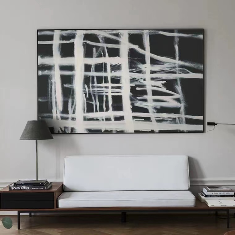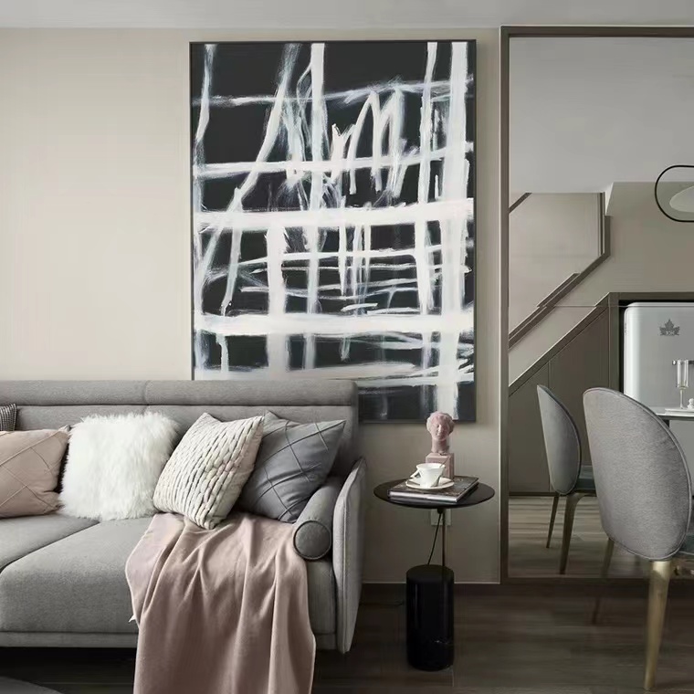 Pure hand-painted oil painting wabi-sabi abstract minimalist modern Nordic light luxury living room porch model room decoration hanging painting