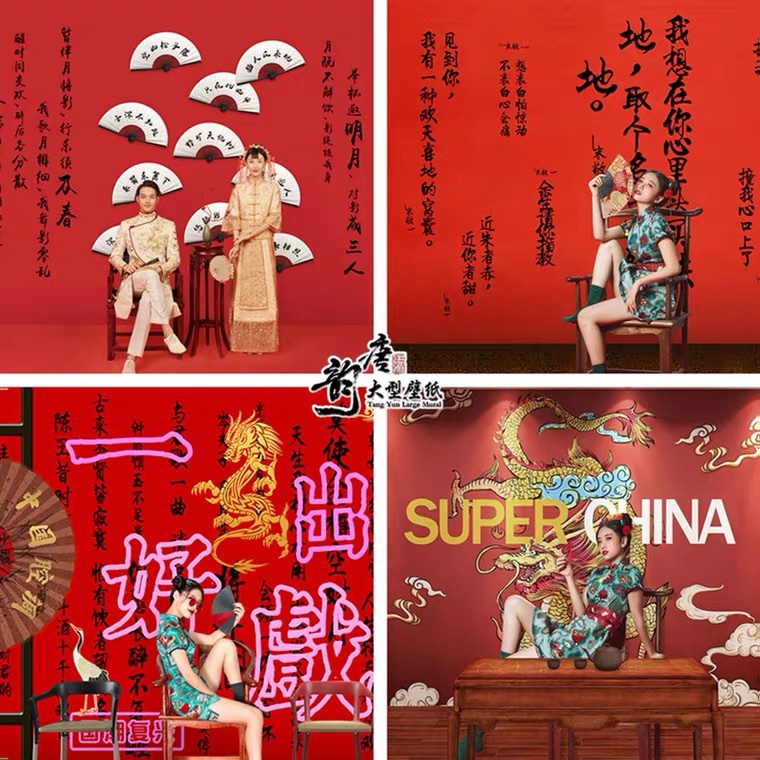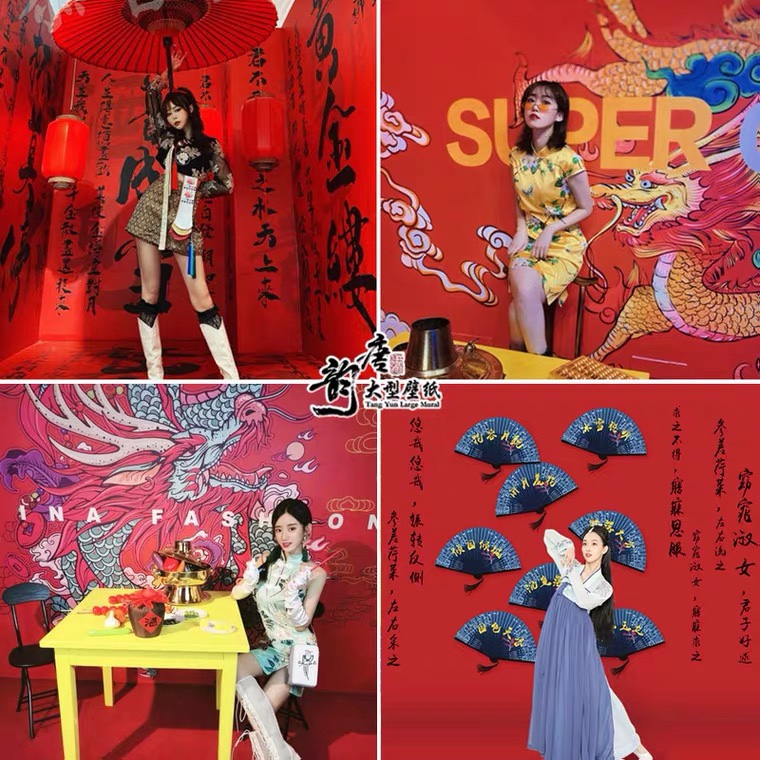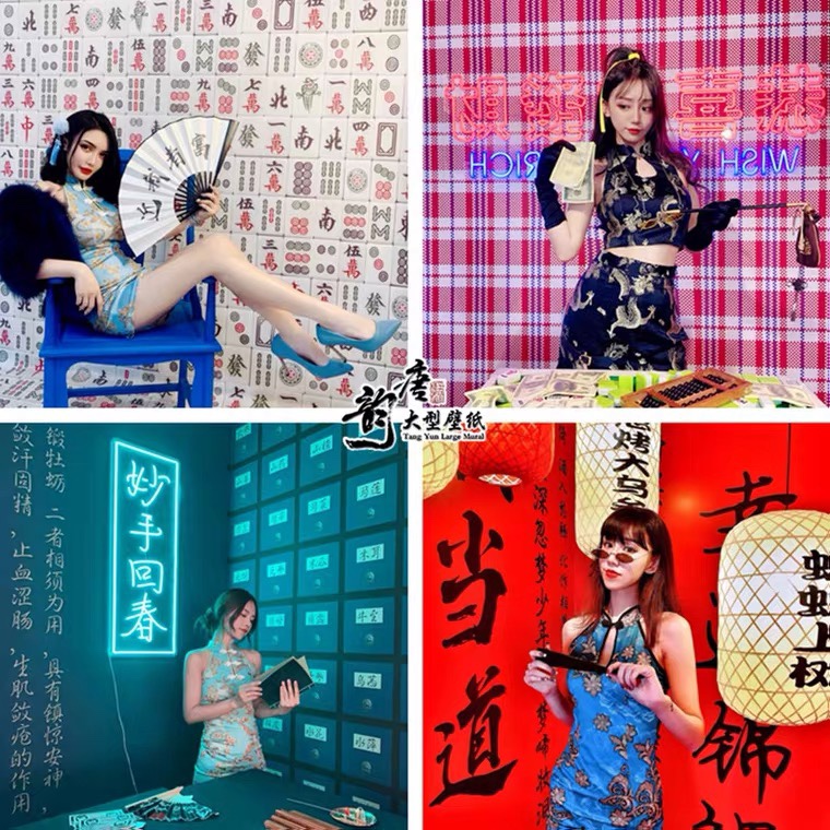 Internet Red Tide Photo Shoots Card Wall Stickwall Stickup Mahjong Changing gallery Self-shooting background