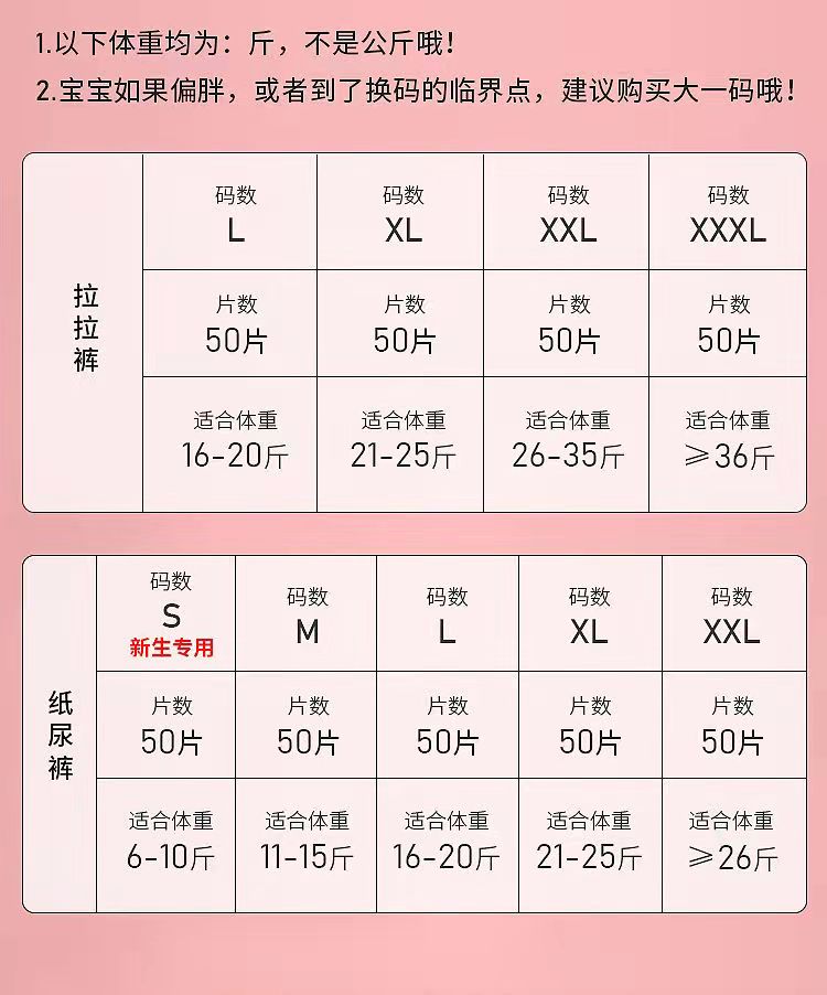 S size diapers (50 pcs)S size diapers (100 pcs)M size diapers (50 pcs)M size diapers (100 pcs)L size diapers (50 pcs)L size diapers (10 pcs)
