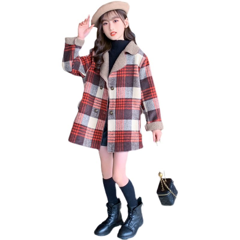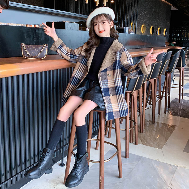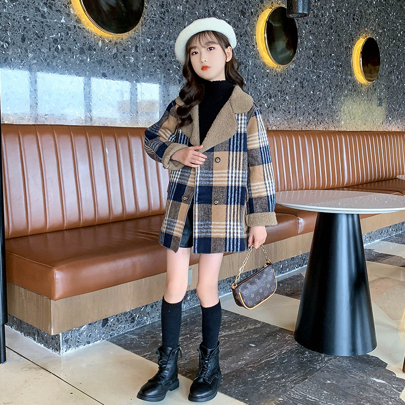 Girl child Daughter Jacket 2022 Autumn Clothing New Internet Red CUHK Child Foreign Pie Trendy Autumn Winter Checkered Fur Coat
