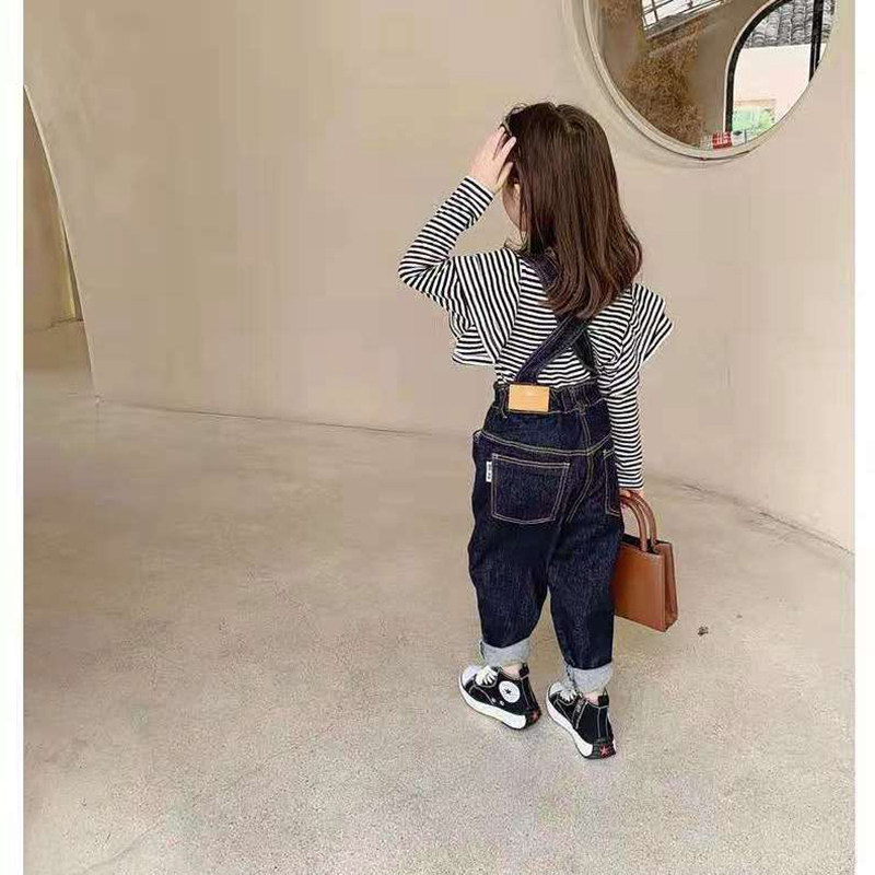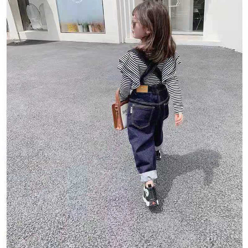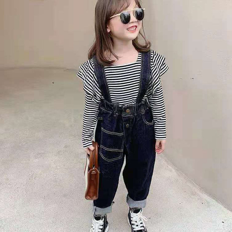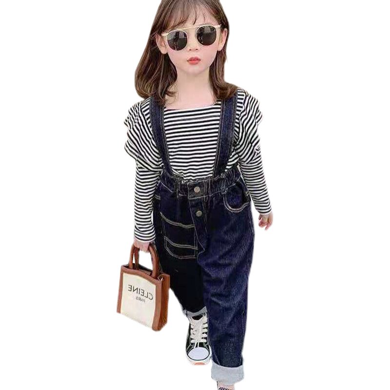 Girl Nets Red Suit Spring Autumn 2023 New Ocean Gas Striped Undershirt Denim Back Belt Pants Children Two Sets Tide-Taobao