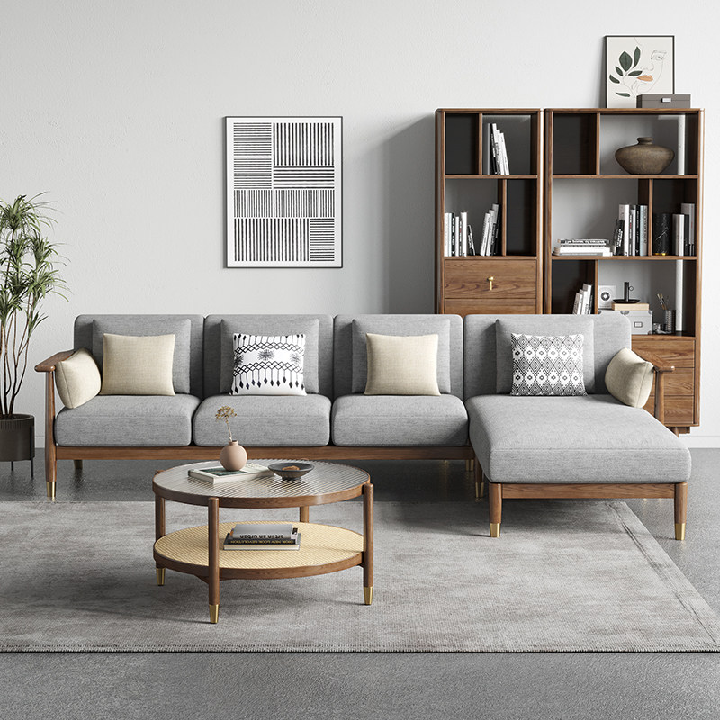 Nordic modular sofa all solid wood fabric Japanese corner modern minimalist small apartment ash wood new Chinese furniture