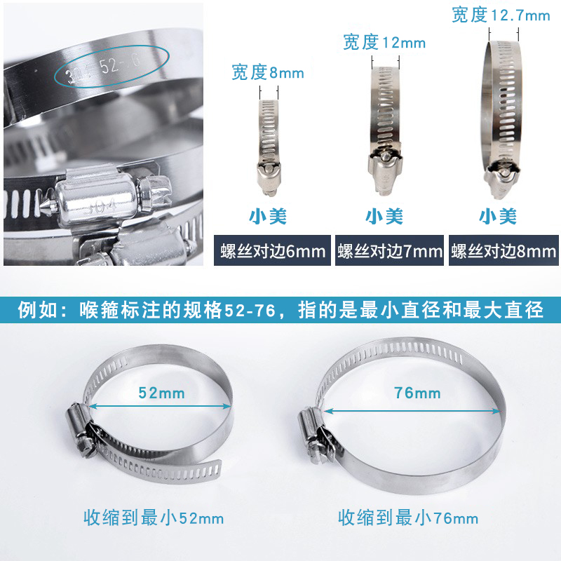304 stainless steel hoop large gauge hoop pipe buckle powerful American throat hoop water pipe hoop pipe clamp fixing buckle