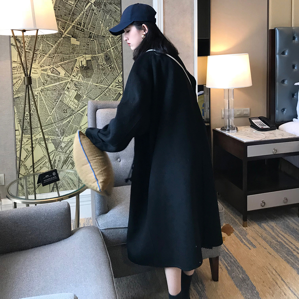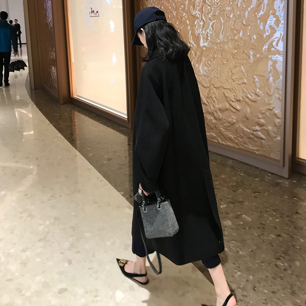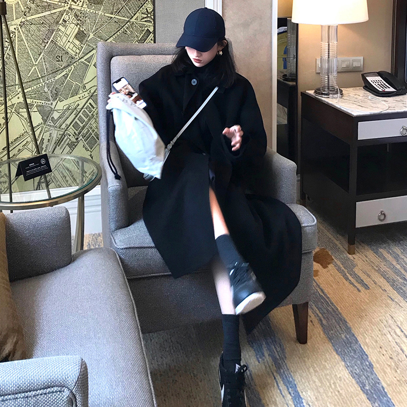 Hepburn style black double-sided cashmere coat women's mid-length version small 2022 autumn and winter woolen woolen coat new
