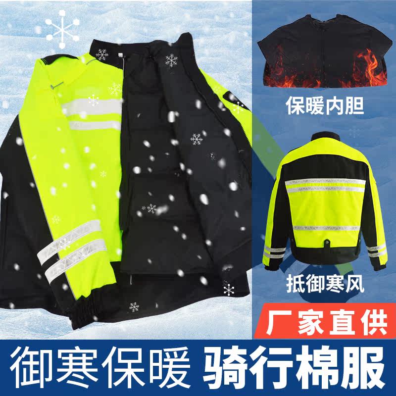 Winter traffic duty clothing plus cotton outdoor riding reflective safety cold clothing silk cotton windproof, rainproof, snowproof and warm