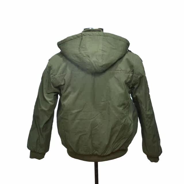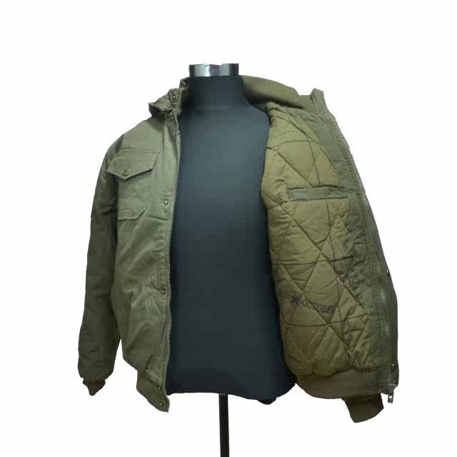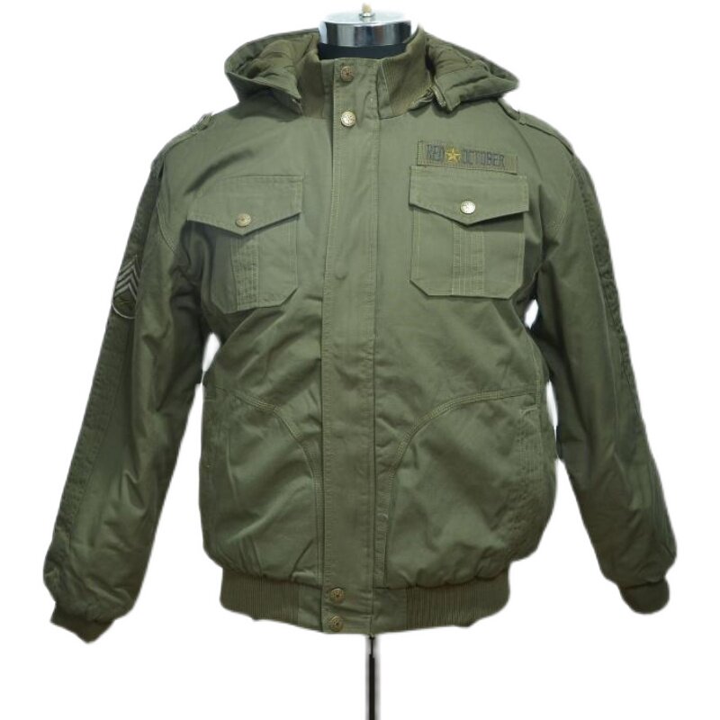 Outdoor Army Green Winter Warm Cotton Jacket Cotton Hat Removable