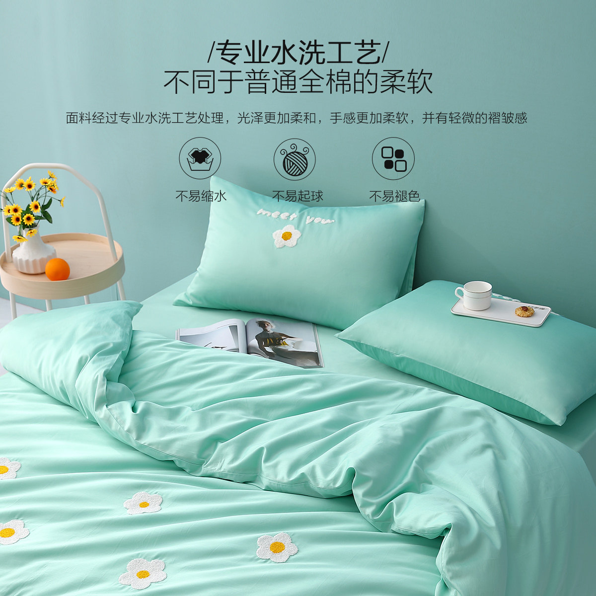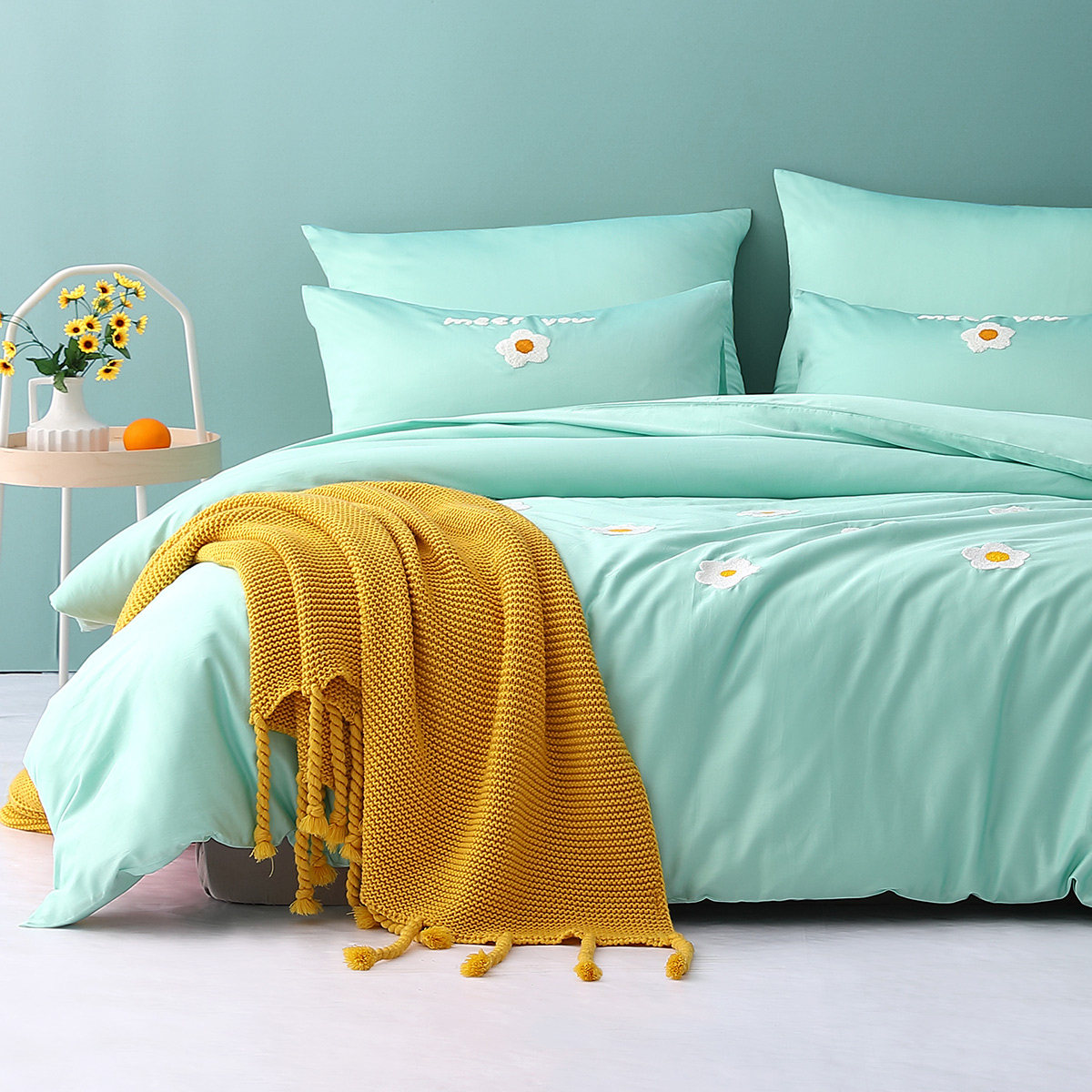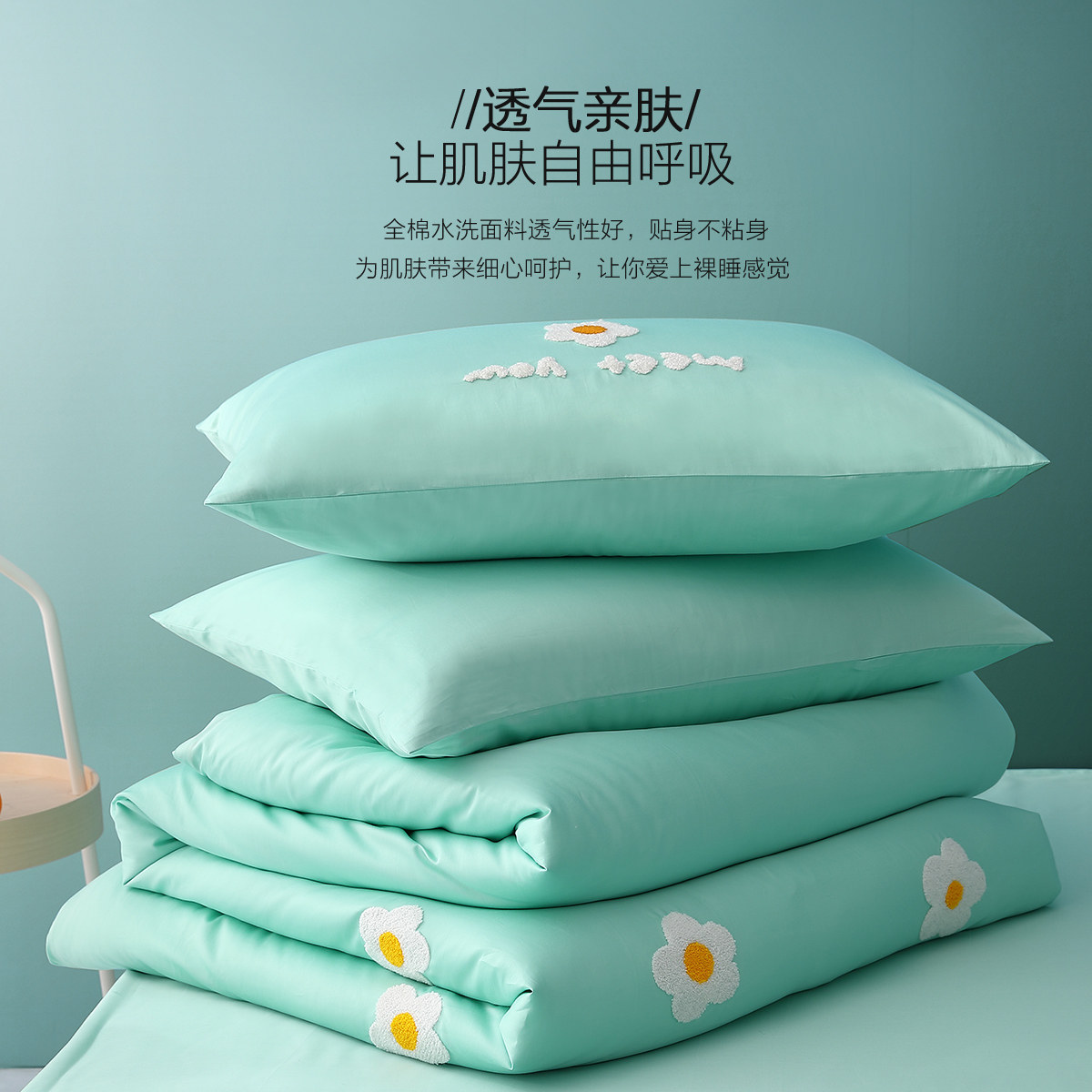 (Washed cotton embroidered bed linen) sunny summer days.