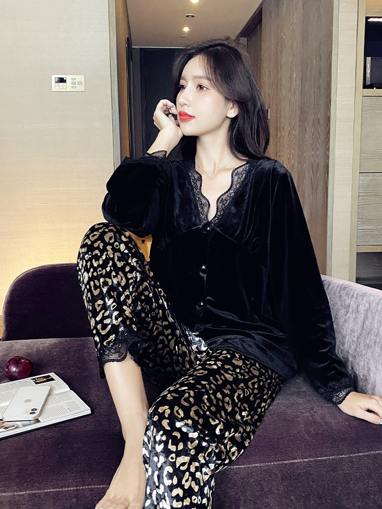 Dreamy artistic tone ~ it's too beautiful sexy BAO WEN gold velvet pajamas women's spring and autumn princess style home clothes
