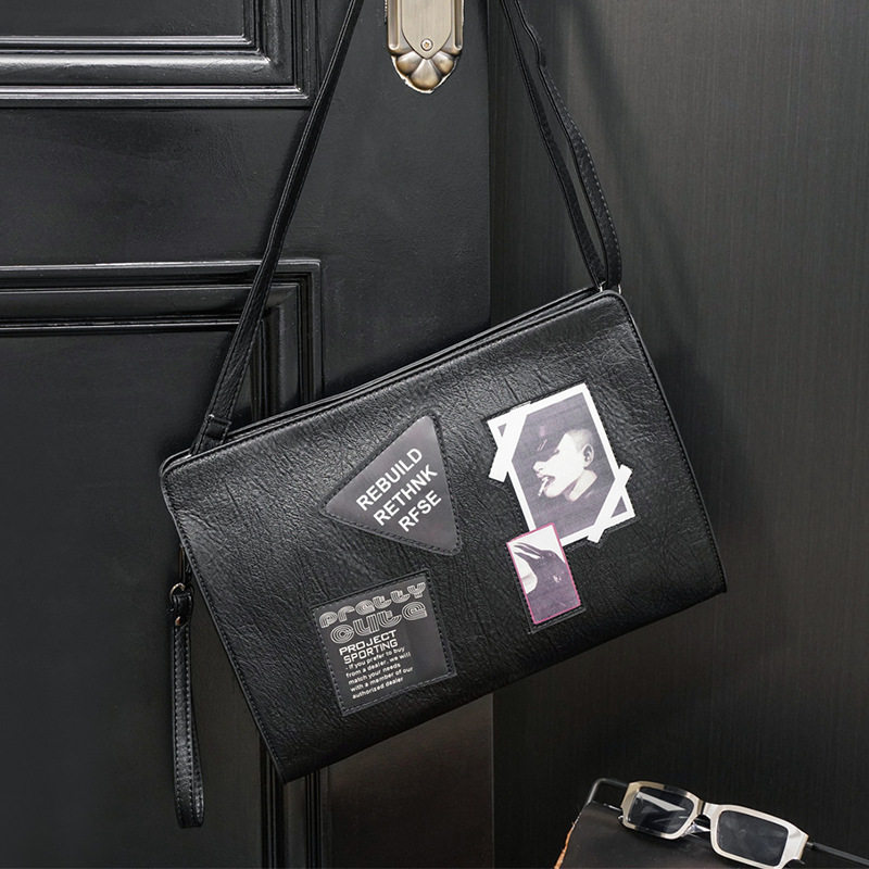 2022 New Personality Graffiti Badges Hand Grab Bag Letter Enveloping Han Edition Men's Bag Single Shoulder Sloped Satchel Handbag Hand Grip Bag Tide