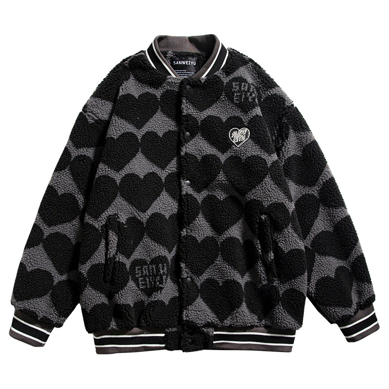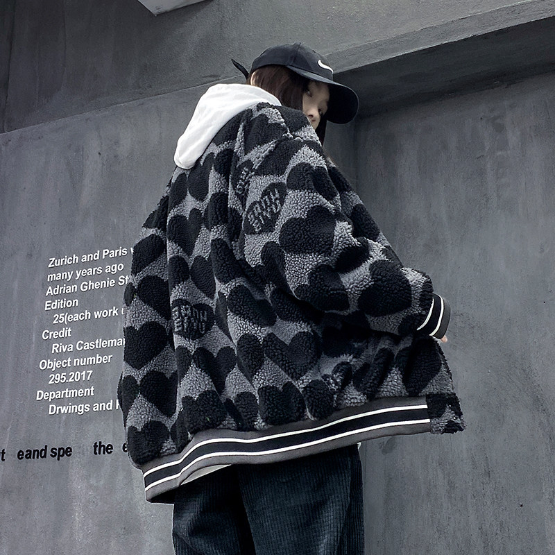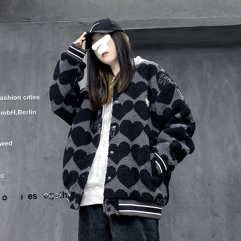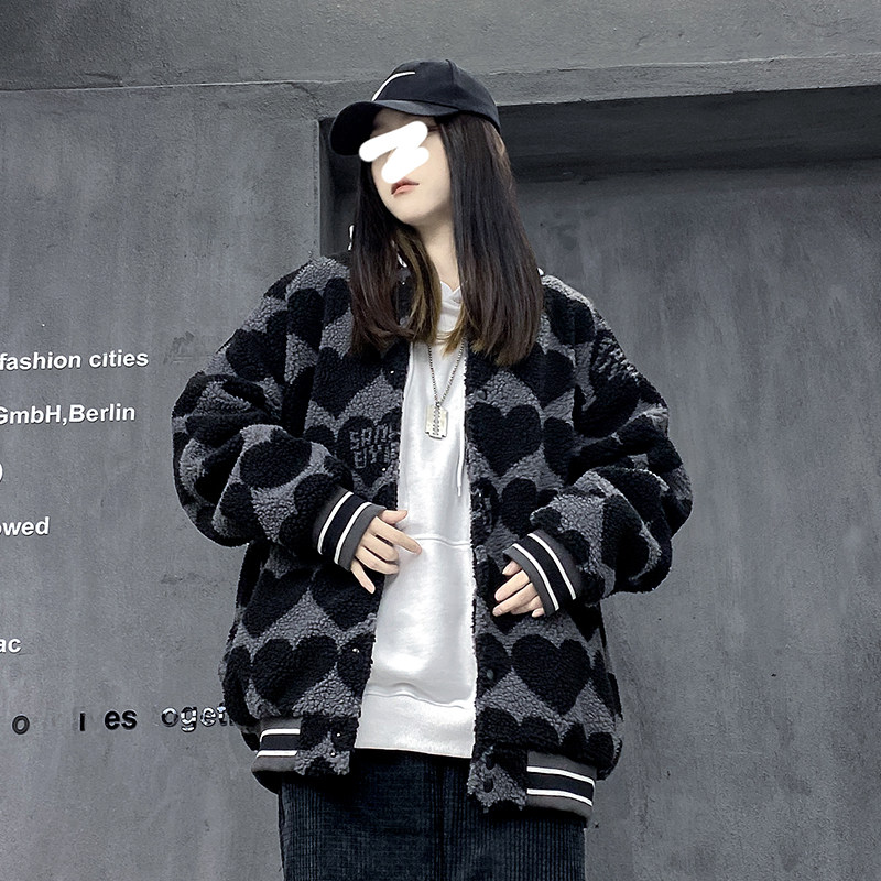 M's tide brand black baseball jacket women's 2022 autumn and winter new ins tide loose lamb wool thickened baseball uniform
