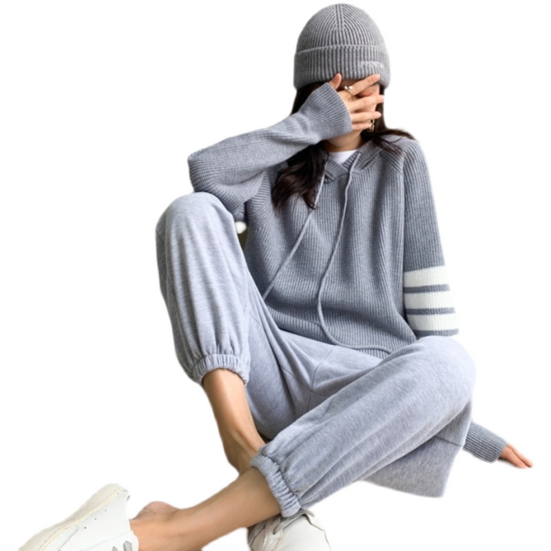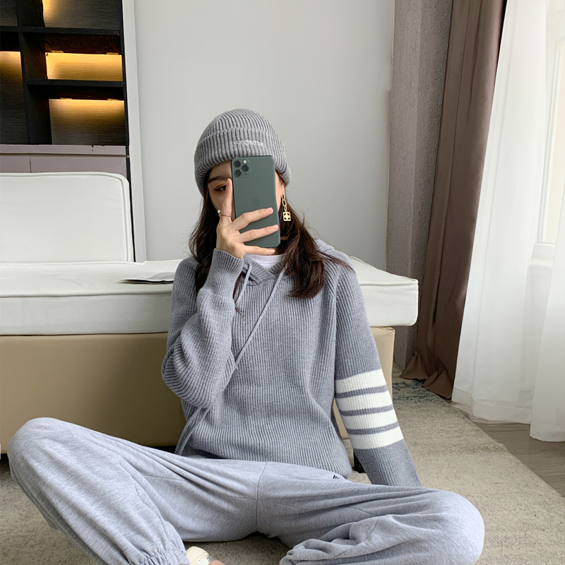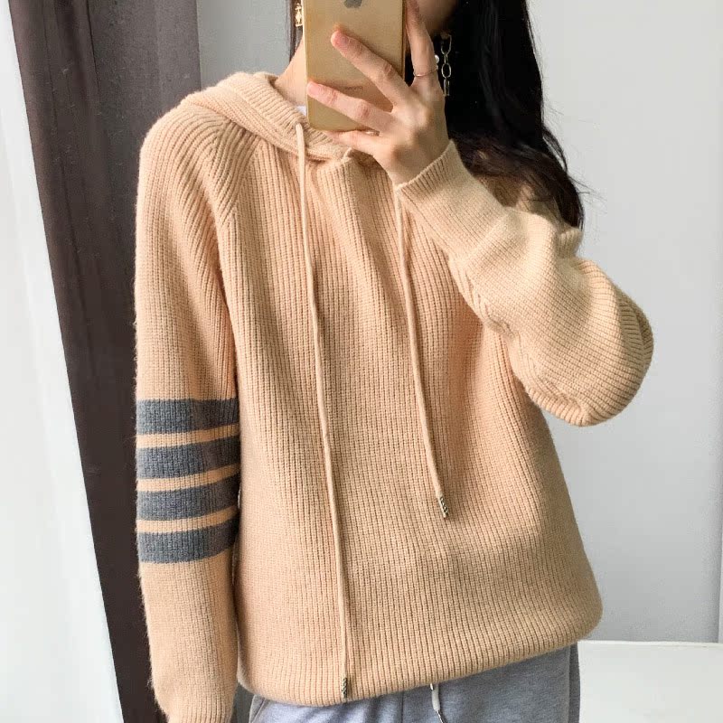 TB hoodie hooded sweater women's loose casual lazy knitted sweater long-sleeved four-bar bottoming all-match sweater