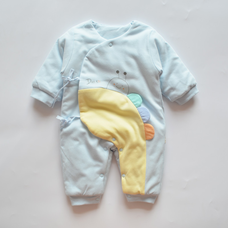 Newborn Home Clothes Autumn Winter Baby Long Sleeve Cable-length Butterfly Coat Khaclothes Pure Cotton Clip Cotton Baby One-piece Suit