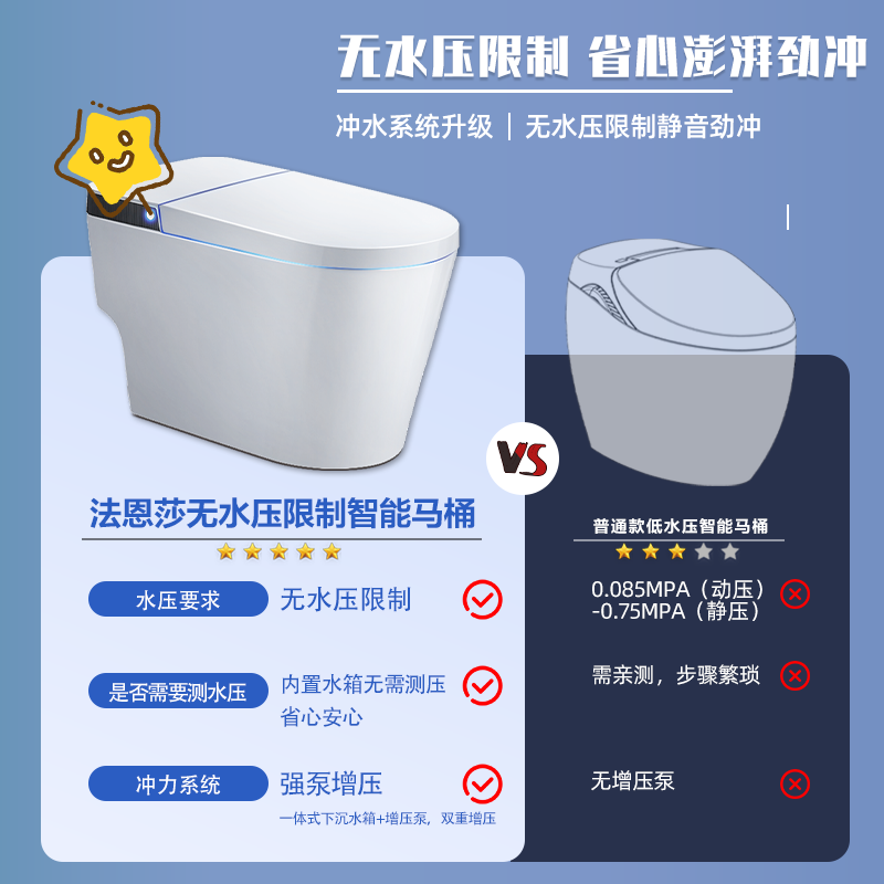 Farnsa bathroom half smart toilet foot sensation household small household type siphon waterless pressure limiting toilet FEL01-Taobao
