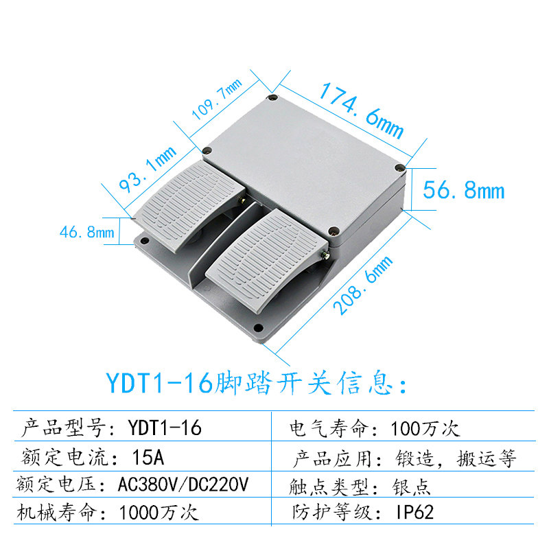 Double pedal switch YDT1-16 pedal type 220V hydraulic press double pedal silver point bending shearing machine 7