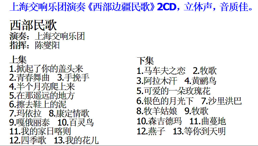 Shanghai Symphony Orchestra Western Frontier Folk Songs 2CD Xinjiang