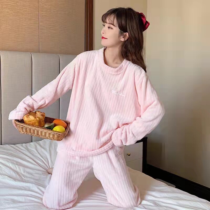 ins day heterochromatology ~ Korean wind teenage girl flannel pyjamas cute tennis red outer wear autumn and winter round collar suit
