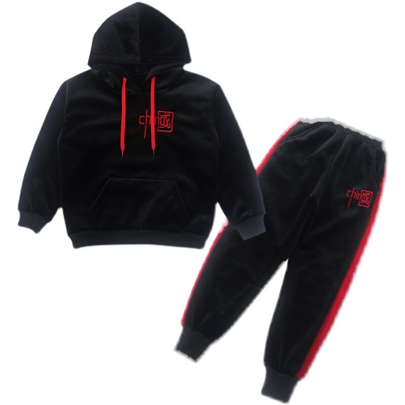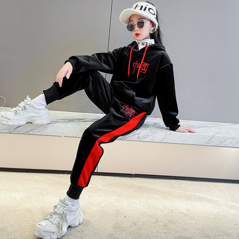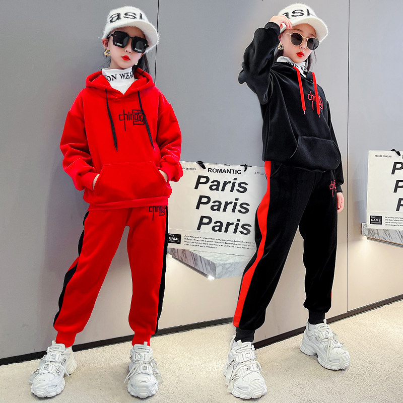 Girl's autumn winter clothing suit 2022 new children girl plus suede thickened 10 gold velvet sweater two-piece set 12 years old