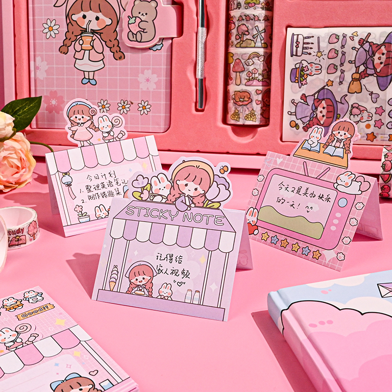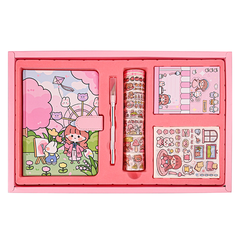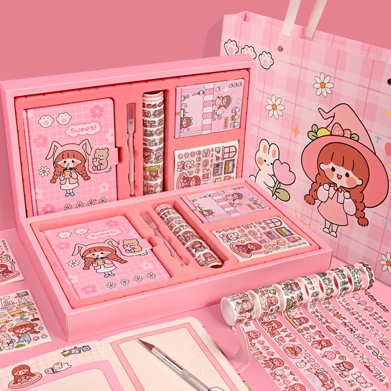 Handbook net red handbook set gift box cartoon cute girl heart notebook simple Japanese ins wind diary color page magnetic buckle book student gift cane tool material full set
