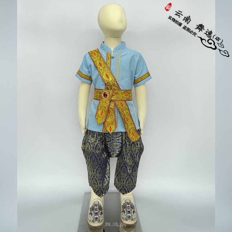 Thai boy clothes green pants small Thai dress exotic folk costumes hero with Myanmar suit Dai ethnic life dress