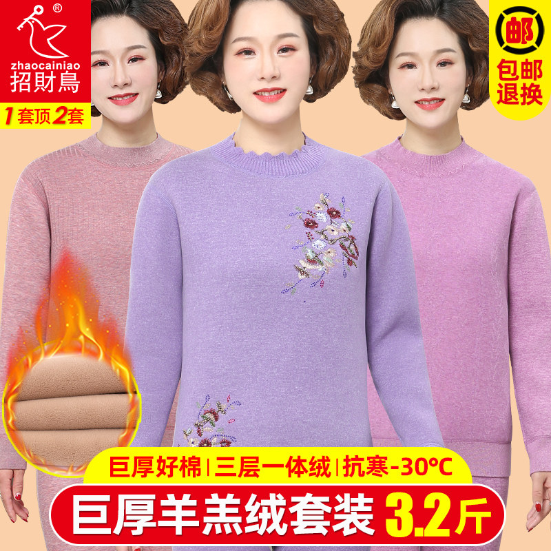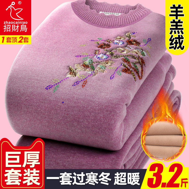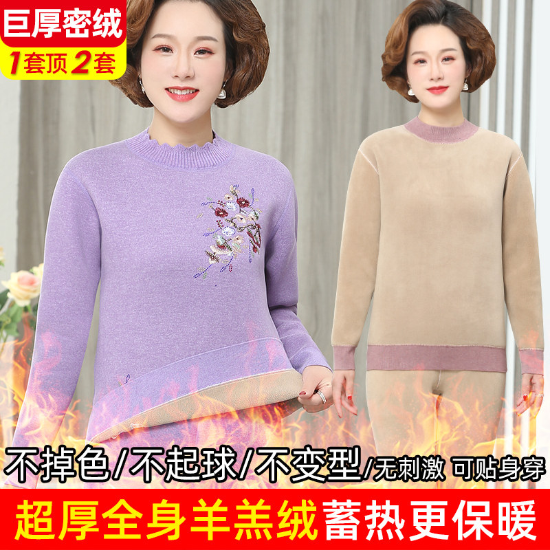 Large-thick medium-aged fever clothes woman plus suede thickened suit large size Mama Grandma hit bottom autumn clothes sanitary pants winter