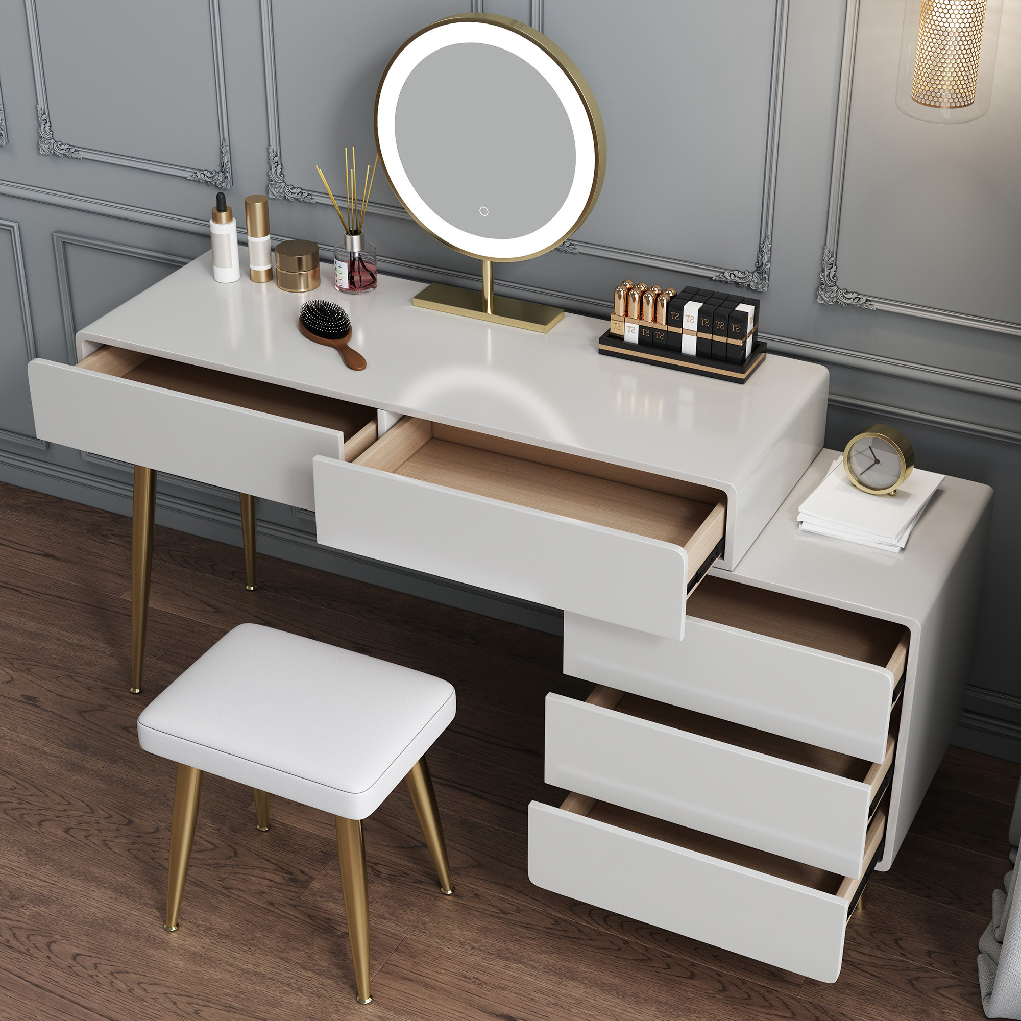 Light luxury paint dresser bedroom modern minimal collection cabinet minimal packing red makeup table with intelligent mirror