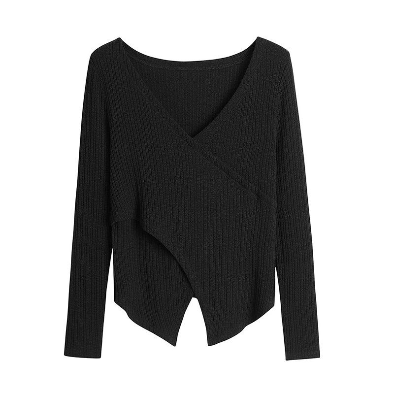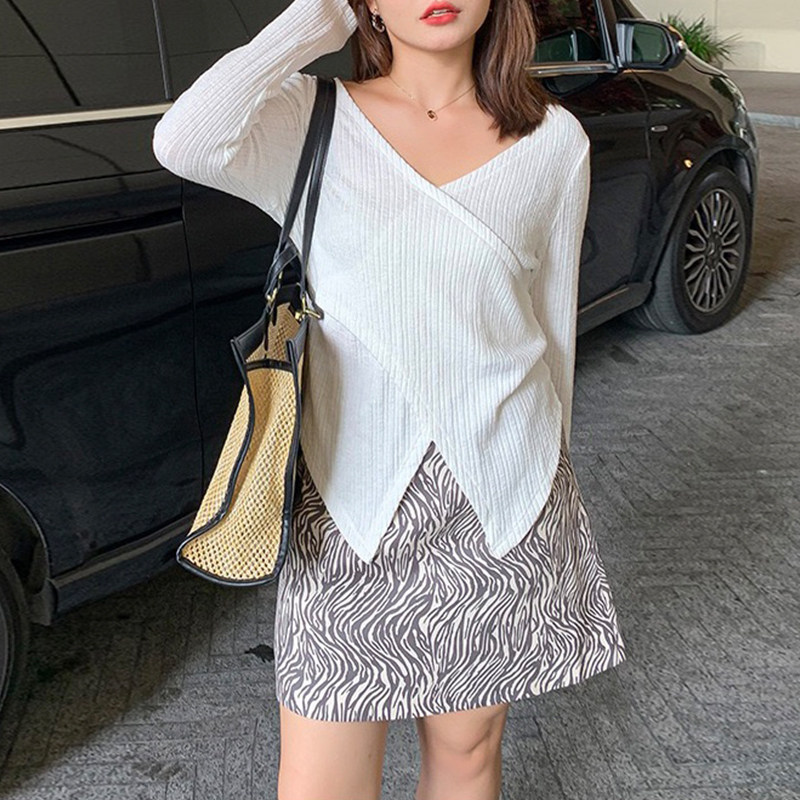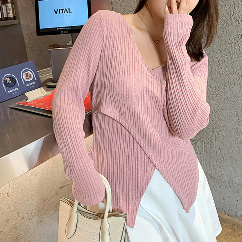 Hitong's large size female dress with fat mm spring and autumn temperament brief V collar cross sleeve head beat undershirt covered with slim jacket