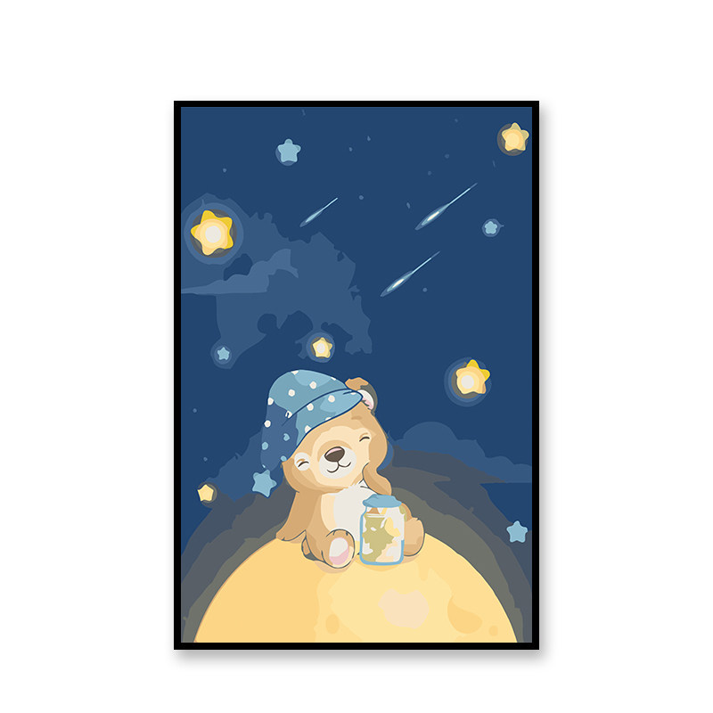diy digital oil painting brief cure small bear oil color painting cartoon puzzle handmade color oil painting animal decoration painting
