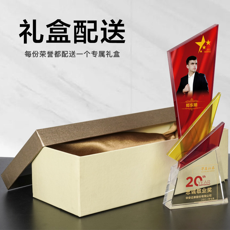 Personal photos of outstanding employees of crystal trophy customization company commend high-end atmospheric creative glass medals