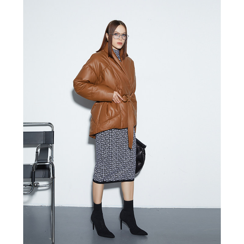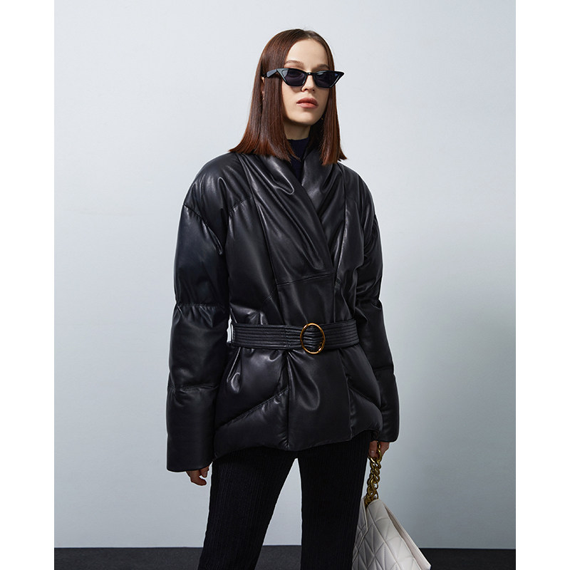 Z Boss Autumn winter Morden Guido Leather Down Suit Women Goose Down Stuffed Beetle Profile Typographic Version Goat Leather Down Clothes Woman