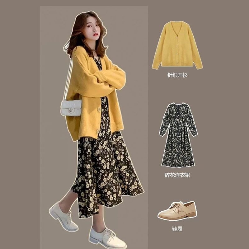 Pregnant Woman Trendy Suit Foreign Pie 2021 Spring Autumn Season Knitted Jacket Outside Wearing Broken Flowers Foreign Dress Early Gestational Gestational Woman Dress