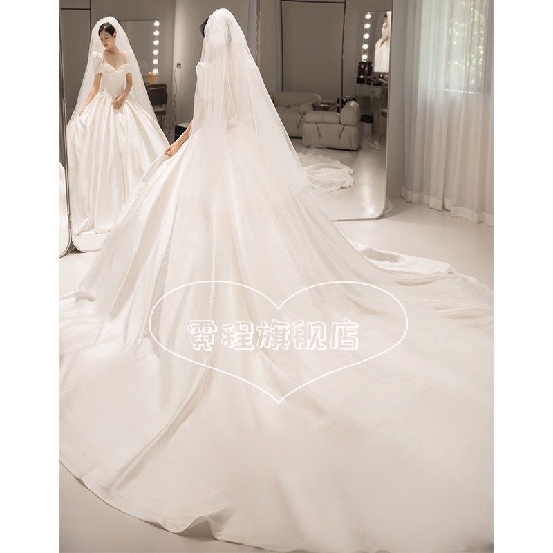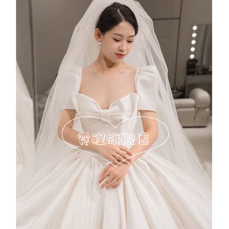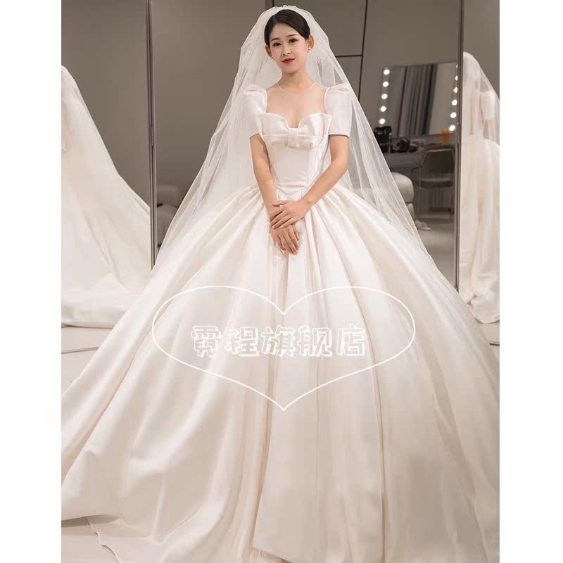 Satin main wedding dress 2021 new bridal trailing 2022 French light out gauze small girl retro one word shoulder