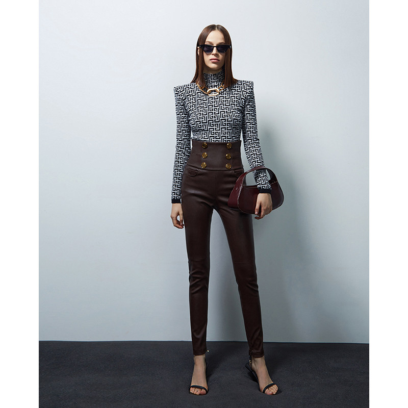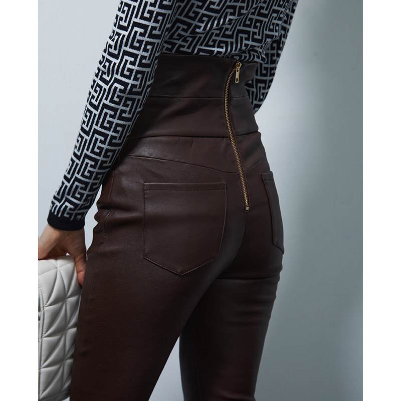 Z boss Bowman classic double-breasted stretch pencil sheepskin pants women slim slim high waist version sheepskin pants women