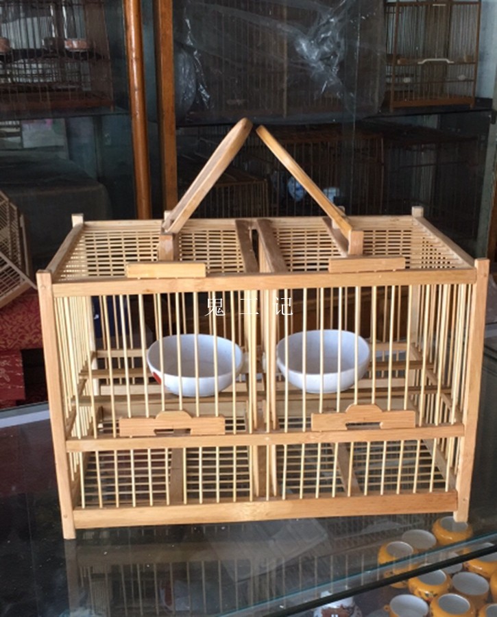 Bird cage (ghost work note) Double-lattice bathing cage handmade (full set with 2 water basins) Large number bathing cage