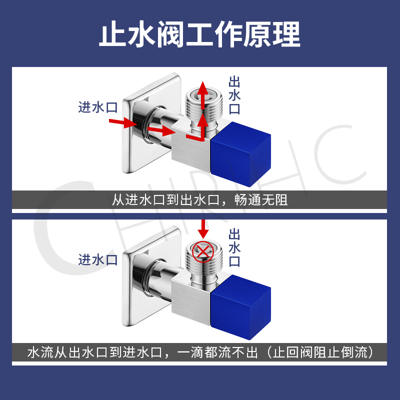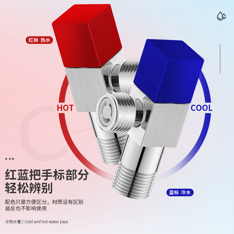 All-copper thickened hot and cold angle valve toilet special anti-backflow check valve water heater square 4 points universal triangle valve
