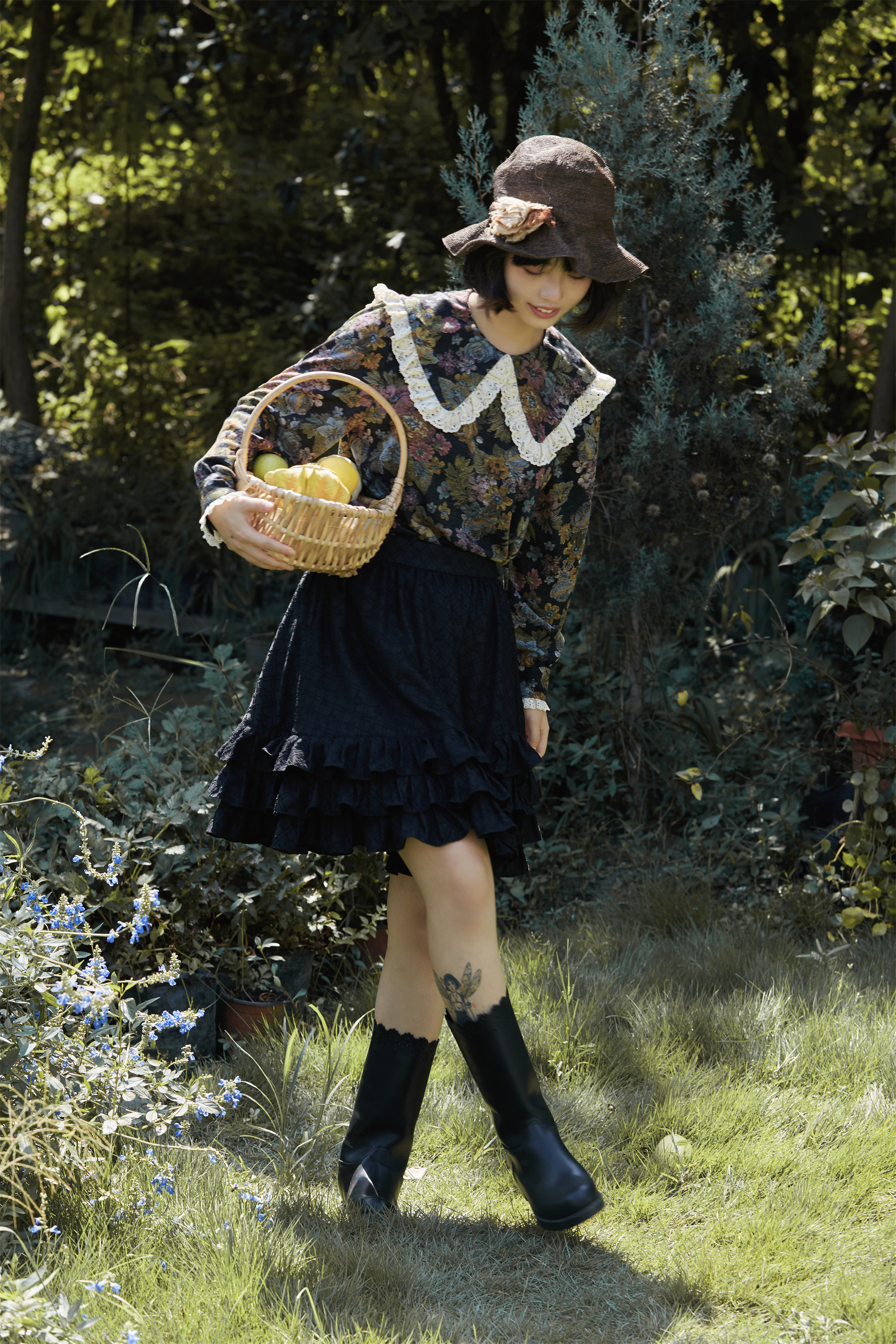 MarrowTang Black Rose Jacquard Short Cake Skirt