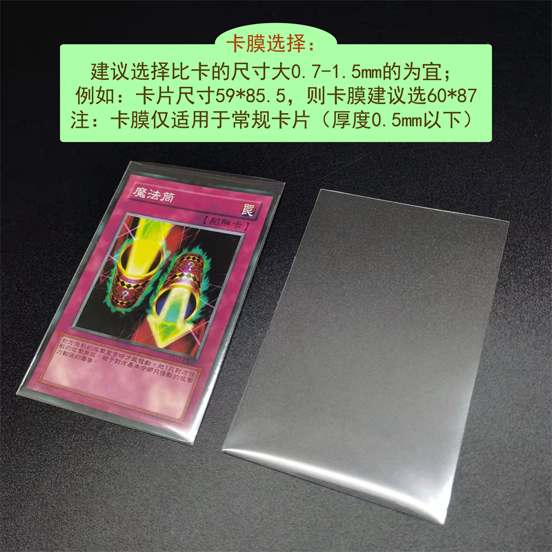 48*75 (suitable for Jiaaole card) 56*128 (suitable for Ye Luolika) 58*8960*87 (suitable for Ultraman full star card) 61*88 (suitable for Yu-Gi-Oh!