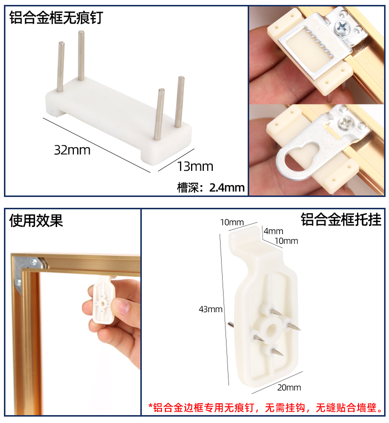 Aluminum alloy frame Scratched Nail PP 1 Aluminum Alloy Frame Hang ABS 1 Aluminum Alloy Frame Bracket 1 Aluminum Alloy Frame Heavy Bracket 1 Triangle Frame Corner Yard 1 Four Corner Frame Corner Code 1