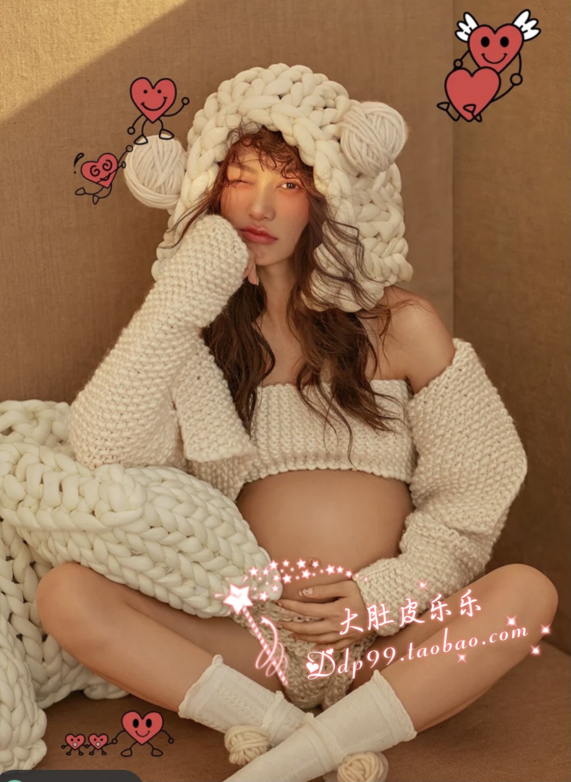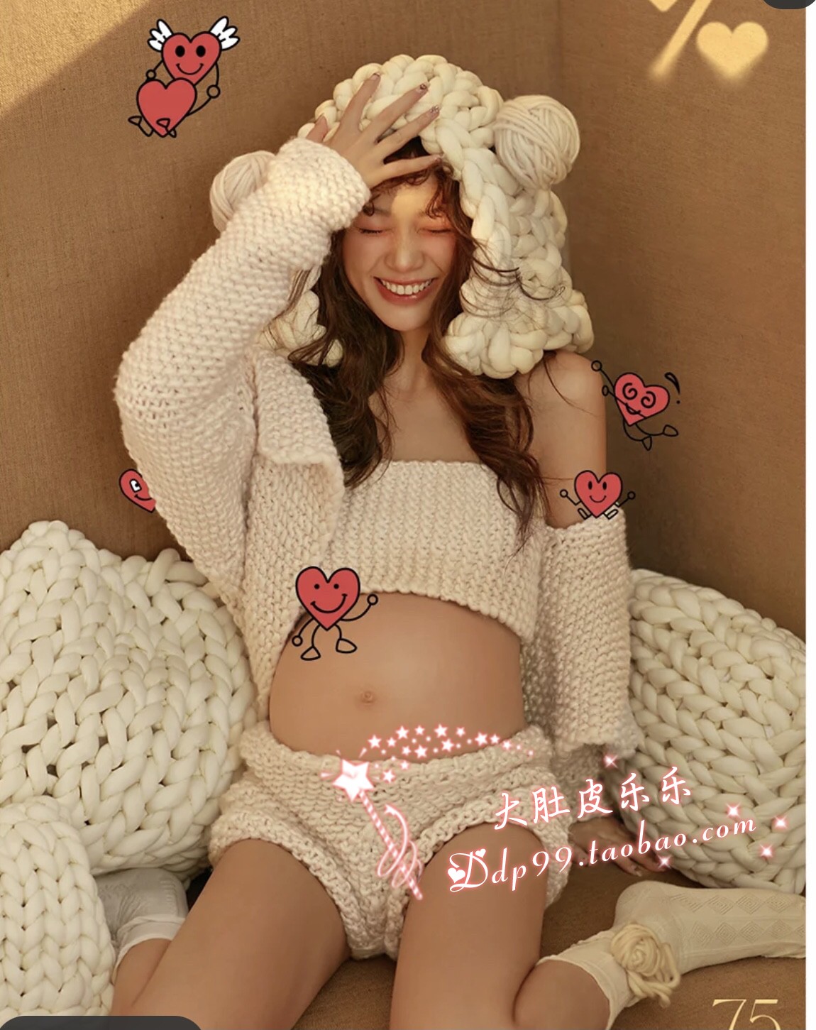 950 Pregnant Woman Photo Clothing Rental Home Cute Little Fresh Rough Knit New Photo Gallery Big Belly Art Sweater