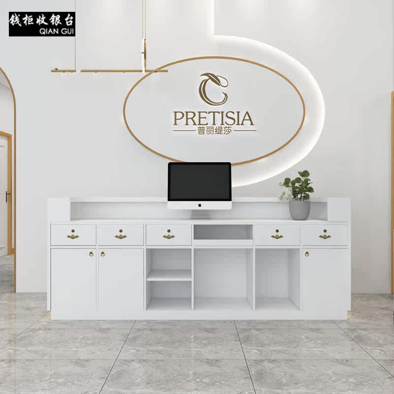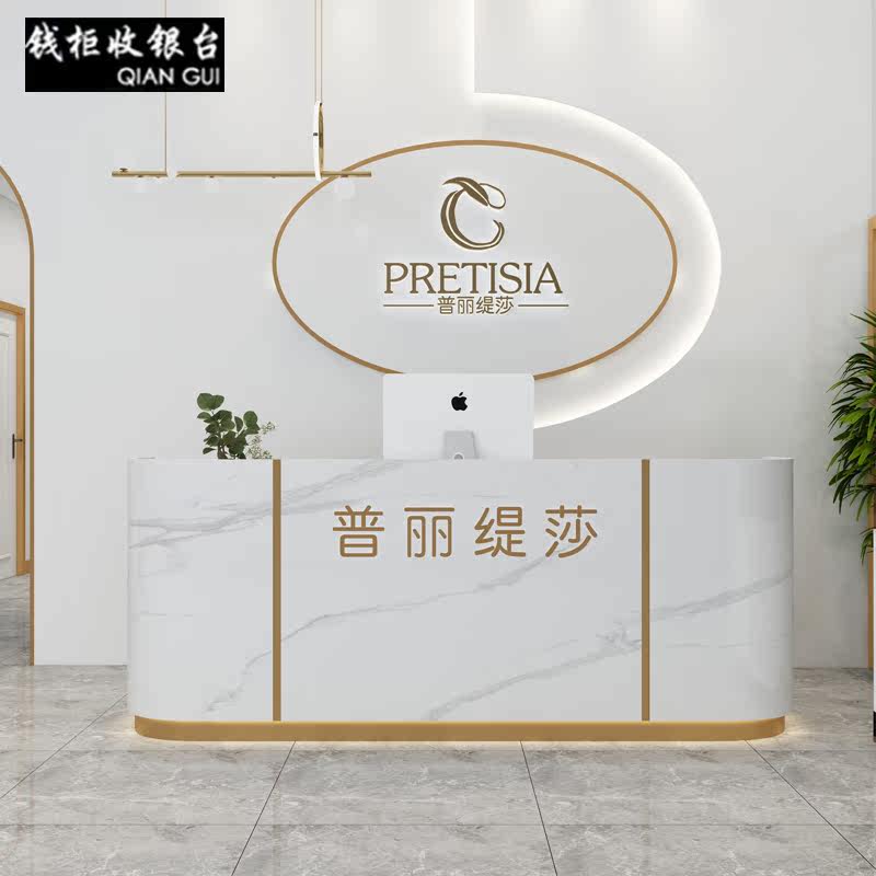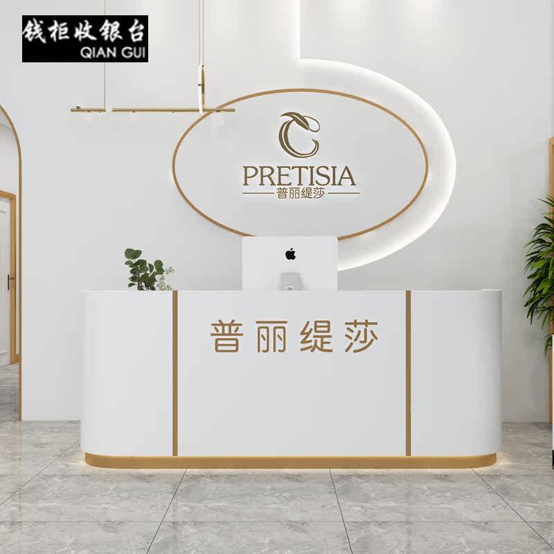 Light luxury clothing store cashier counter simple modern shop bar company front desk beauty salon curved reception desk