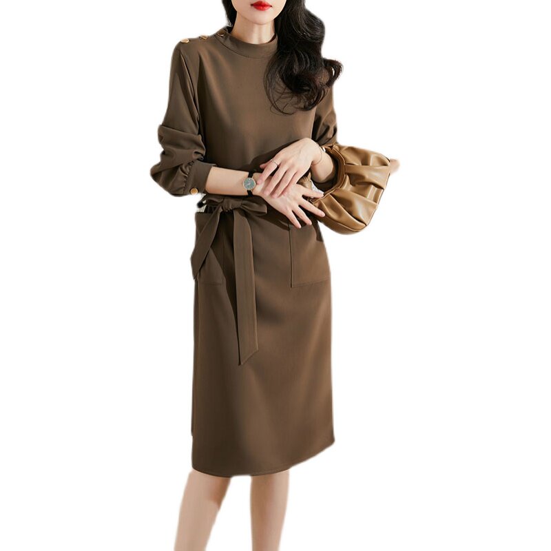 Mularsa method elegant upright collar lace dress for women 2022 spring new cashew slim temperament skirt