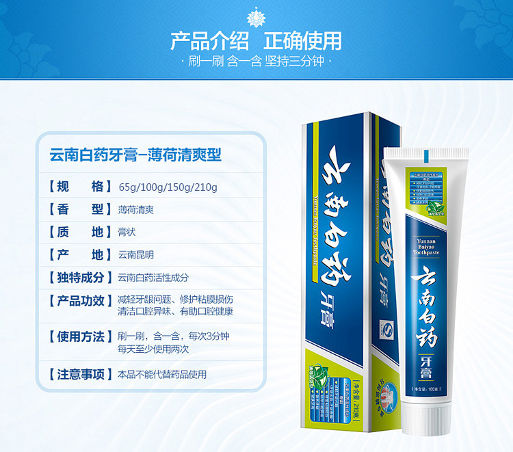 Cloud South White Drug Mint 210g Mint To Stain to Yellow toothpaste