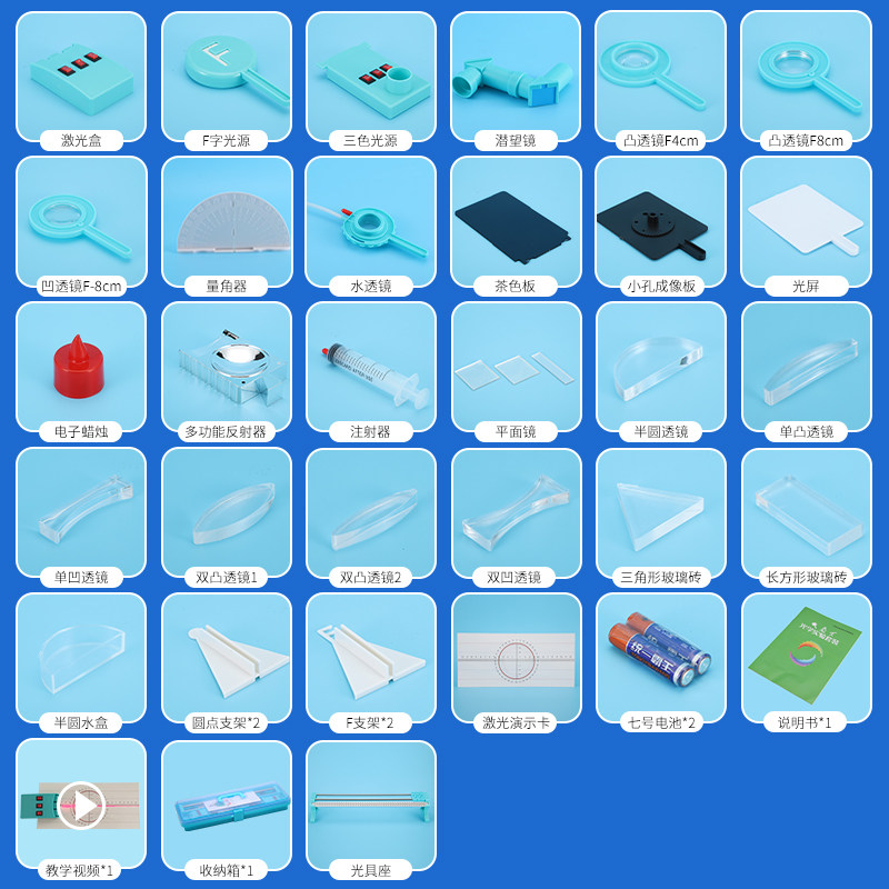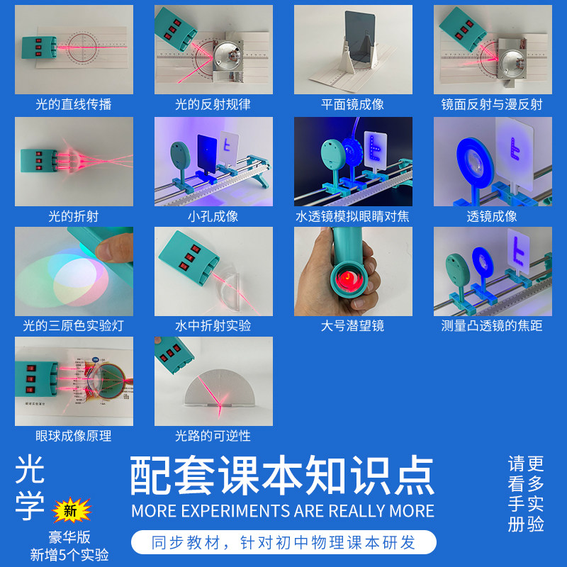 Junior high school physical optical experimental equipment complete set of junior high school optical experimental box convex lens imaging photography camera small hole imaging light reflection demonstrator set