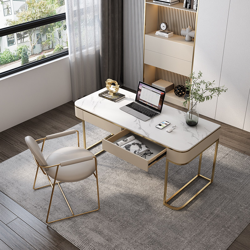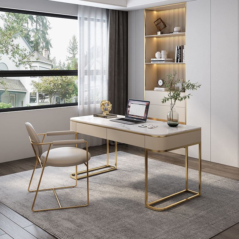 Franza 2021 new light luxury bright rock board desk chair modern minimalist computer desk solid wood office desk
