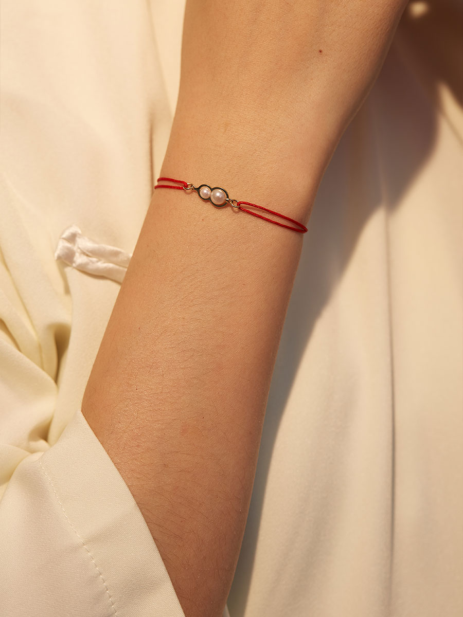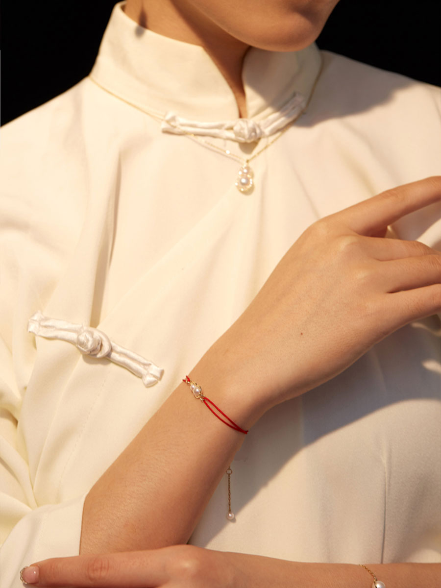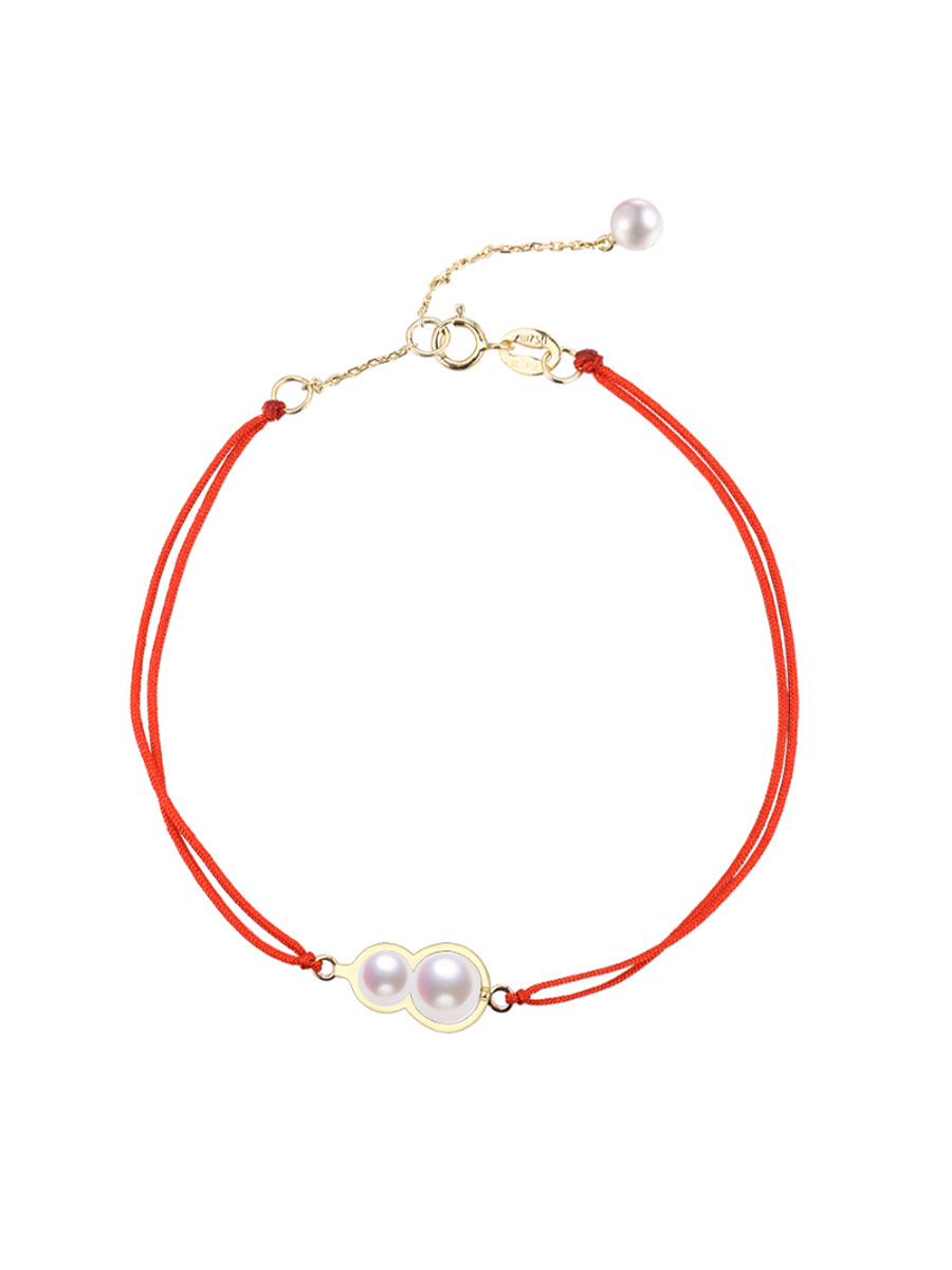HeyJewel original design Meisong Zhiguang Fulu gourd 14K gold pearl red rope female small and exquisite earrings