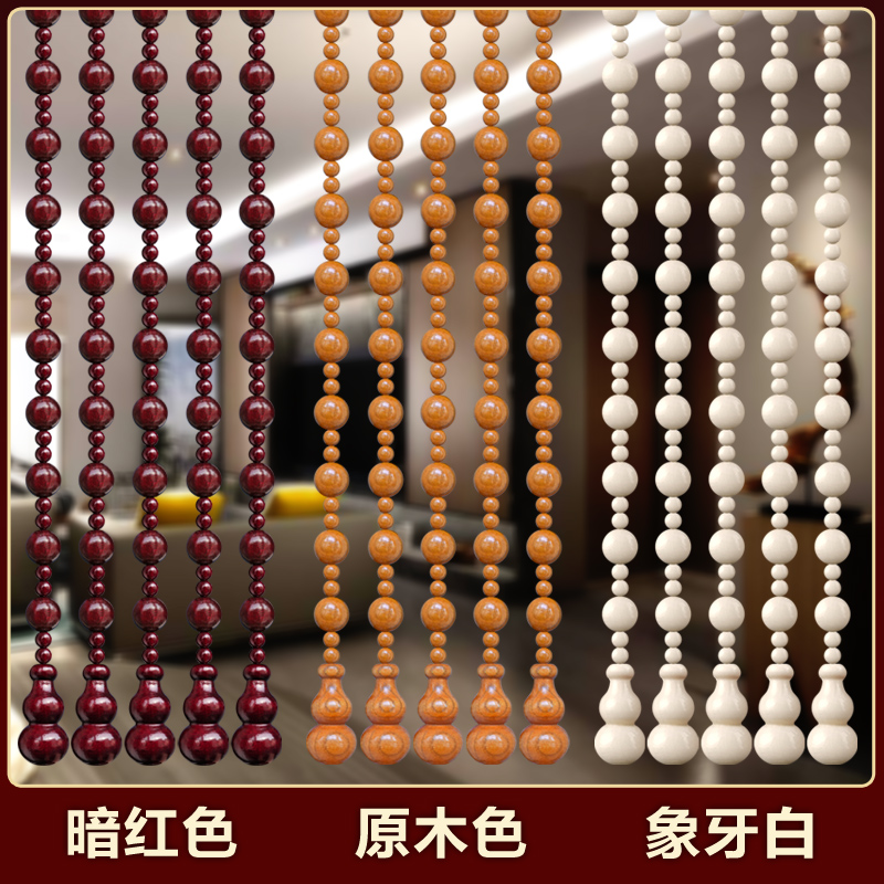 New full peach wood gourd bead curtain living room half curtain porch balcony partition curtain household finished curtain solid wood door curtain