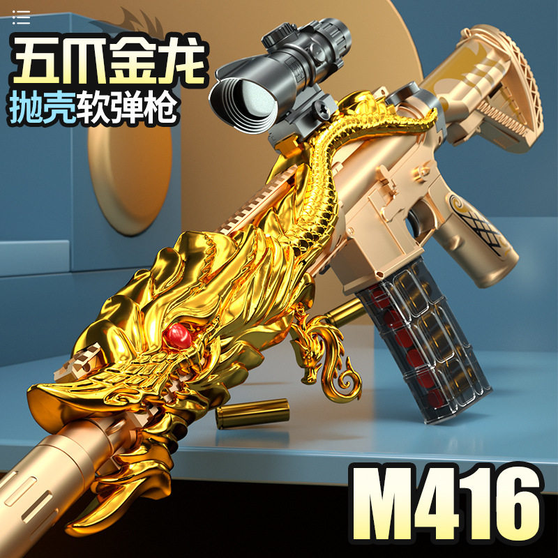 Lochen Soft Pellet Gun Five Paws Golden Dragon M416 Throw Shell Toy Gun Emulation Sniper Child Boy Rush To Eat Chicken Full Set
