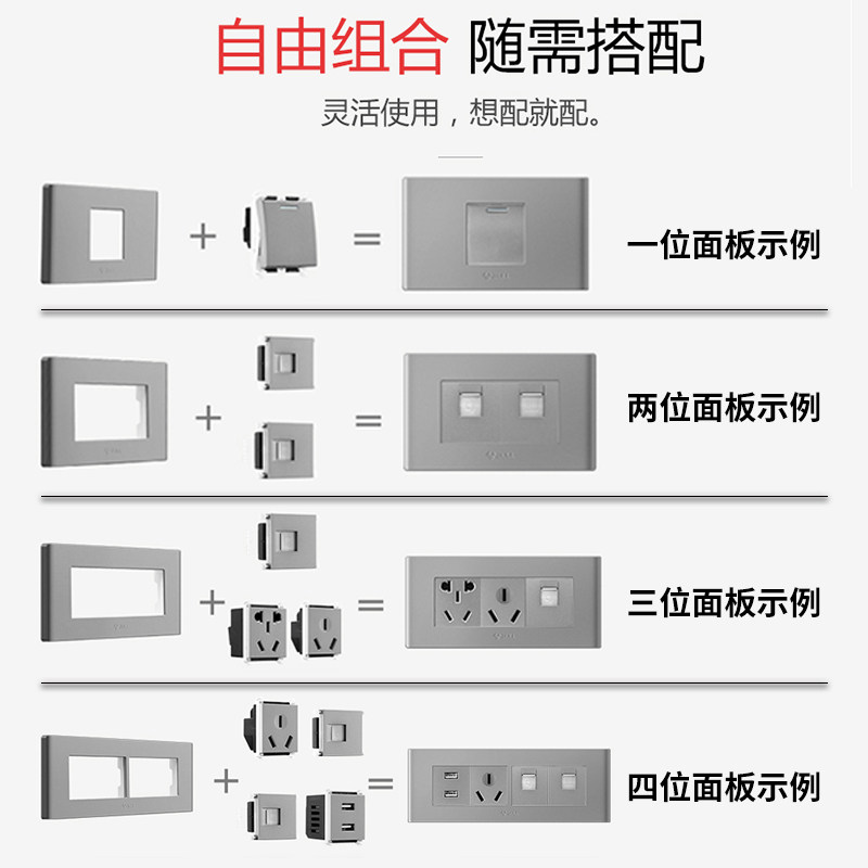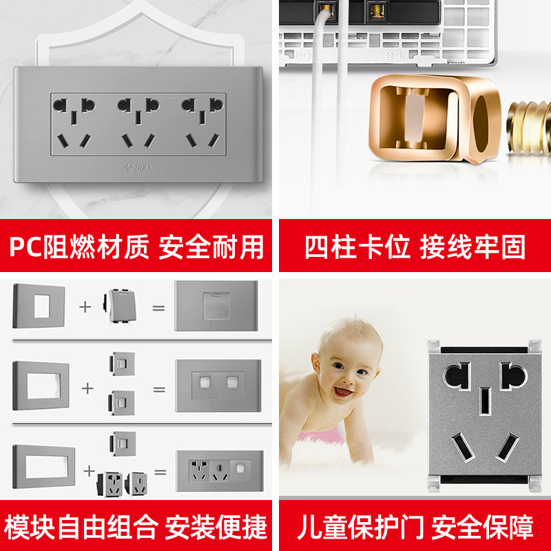 Bull 118 Type With Switch Socket Computer TV Usb Open fifteen Holes Porous Wall Panel Home Grey