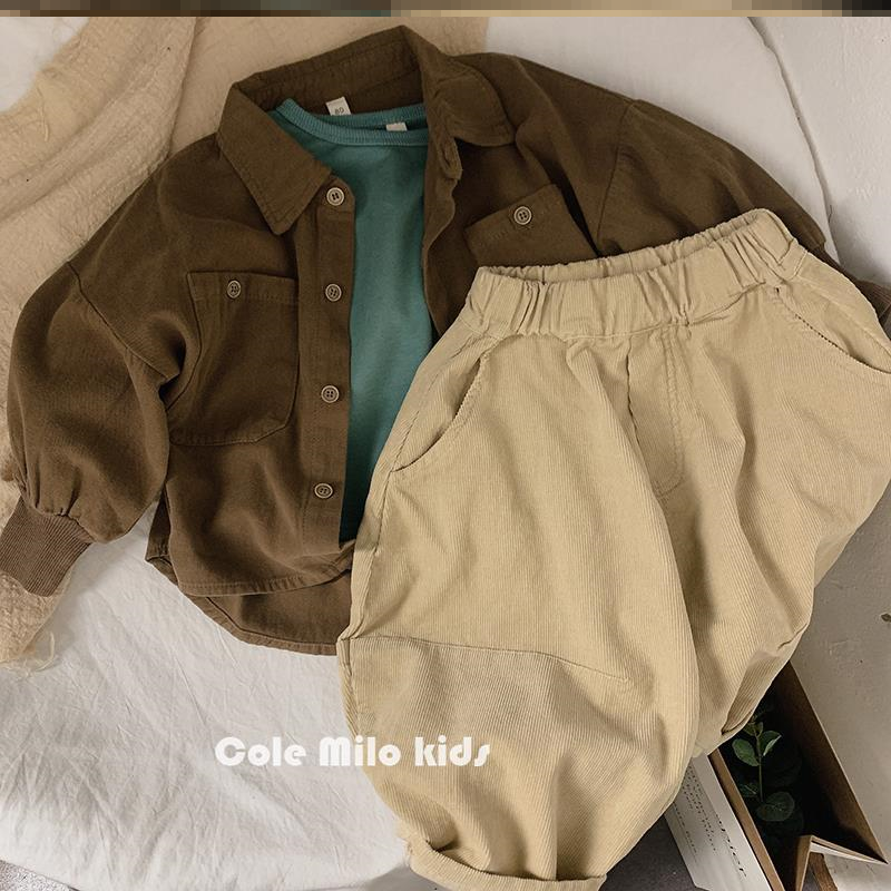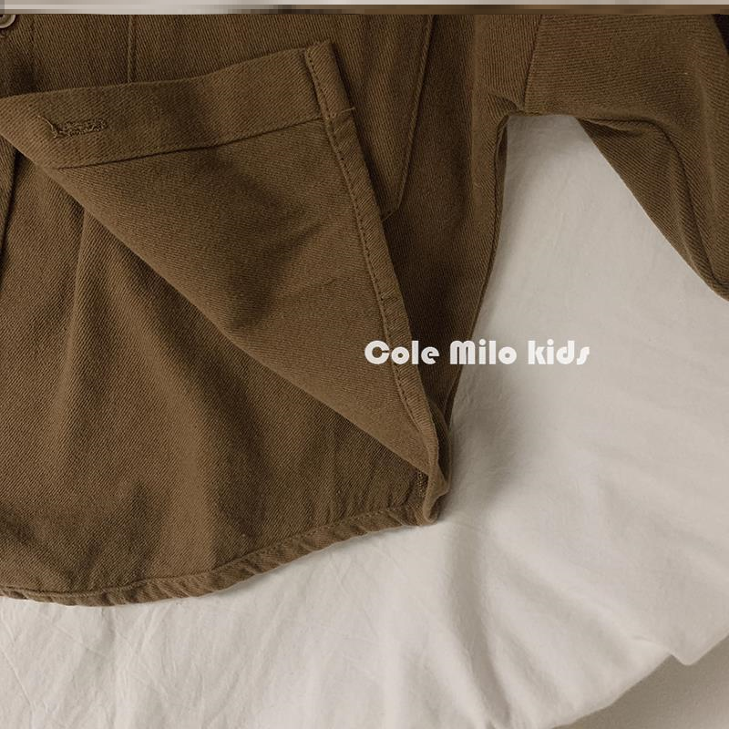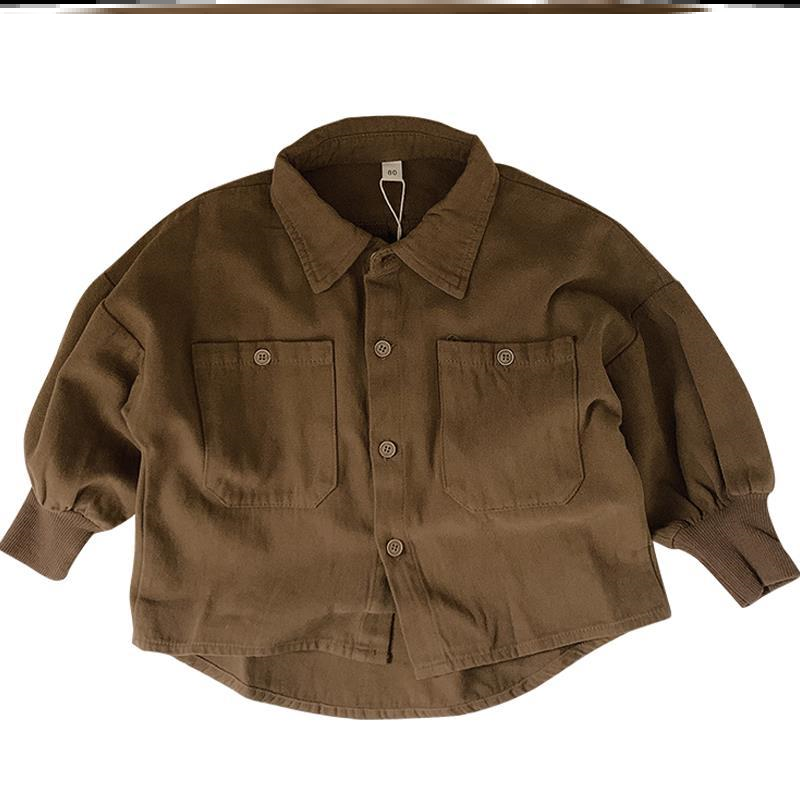 Boy mill wool shirt children turn in pure cotton long sleeve shirt baby brown coat day family spring autumn retro foreign pie