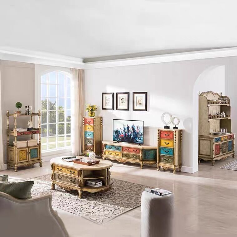 American vintage solid wood bookcase European style Villa drawer drawer drawer drawer cabinet drawer drawer living room partition cabinet small cupboard cupboard